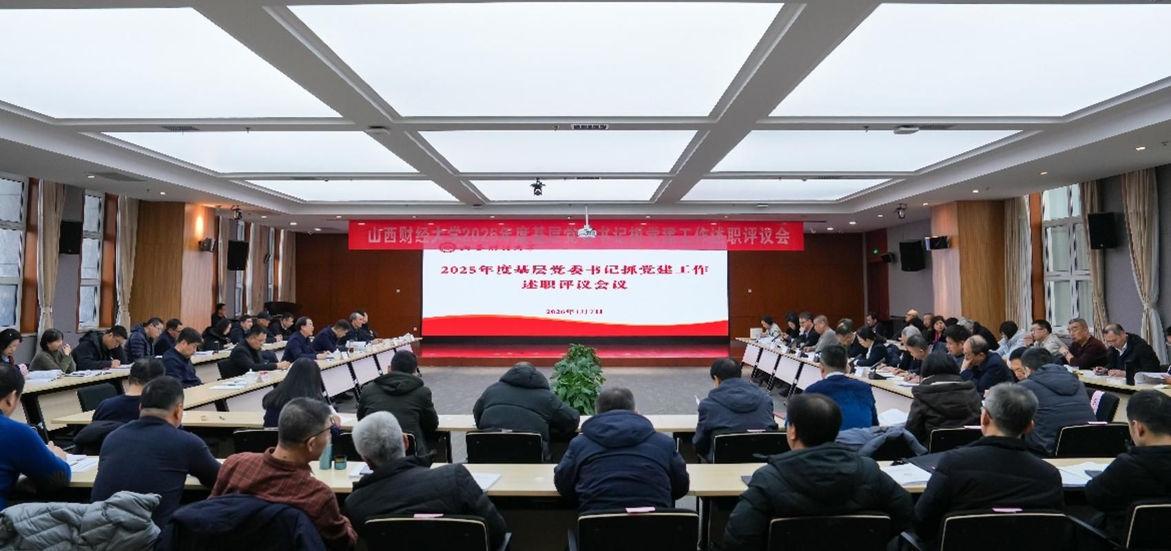 会上,财政与公共经济学院党委、管理科学与工程学院党委、信息学院党委、工商管理学院党委、马克思主义学院党委、经贸外语学院党委、离退休人员工作部党委等7位基层党委书记作了会议述职,其他基层党委书记作了书面述职。与会人员对各基层党委书记2025年度抓党建工作情况进行了民主测评。